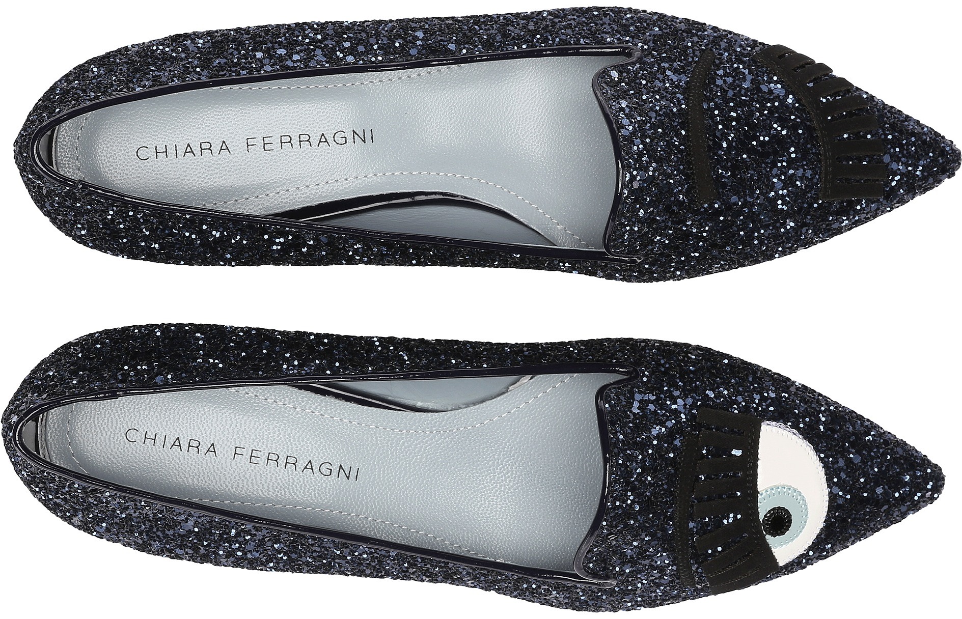 Chiara Ferragni Glitter Flirting Pointed Toe Flat Navy