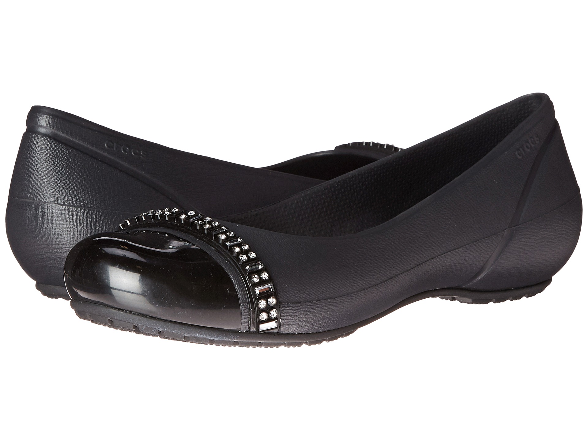 Crocs Cap Toe Rhinestone Band Flat Black/Black