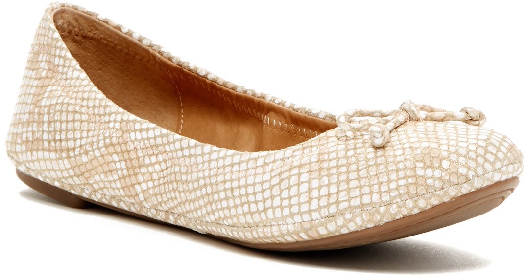 Lucky Brand Eadda Flat - Wide Width Available WHITE- GOLD LEATHER