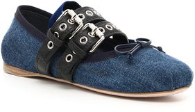 Miu Miu Denim And Leather Ballerinas BLU+NERO