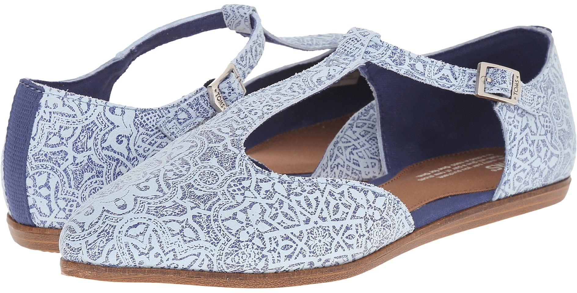 TOMS Jutti T-Strap Blue Tiles Suede Printed