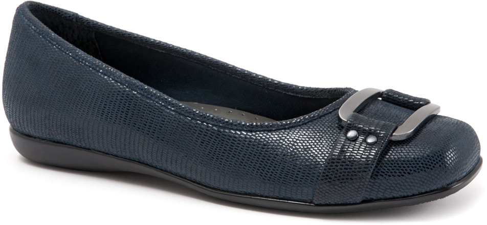 Trotters Sizzle Dark Blue Patent Suede Lizard Leather