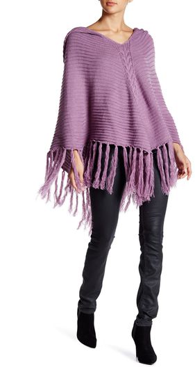 14th & Union Textured Knit Hooded Poncho PURPLE VICTORIA