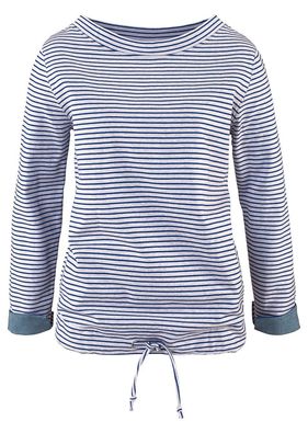 O piesă ultra confortabilă, perfectă pentru orice ţinută, prevăzută cu decolteu rotund şi larg, buzunare pe cusăturile laterale, şnur de strângere la tivul poalei şi capetele mânecilor lungi răsucite. Model lavabil cu o lungime de cca. 66 cm la măr. 40/42. Material superior: 60% bumbac, 40% poliester