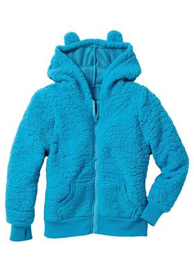 O piesă drăgălaşă şi ultra călduroasă, realizată din material polar tip Teddy, flauşat moale. Model prevăzut cu glugă şic, iar la nivelul mânecilor cu terminaţii ripsate cu orificii pentru deget. Material superior: 100% poliester