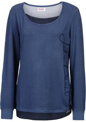 Cu aspect 2 în 1, mâneci lungi şi un model confortabil. Marca John Baner şi motiv decorativ cu scris. Baretă de prindere laterală, prevăzută cu capsă. Lungime de cca. 70 cm la măr. 40/42. Se spală la maşină.