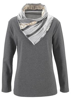 Cu guler tip șal, un model practic și o lungime de cca. 66 cm la măr. 40/42. Se spală la mașină. Material superior: 40% poliester, 60% bumbac
