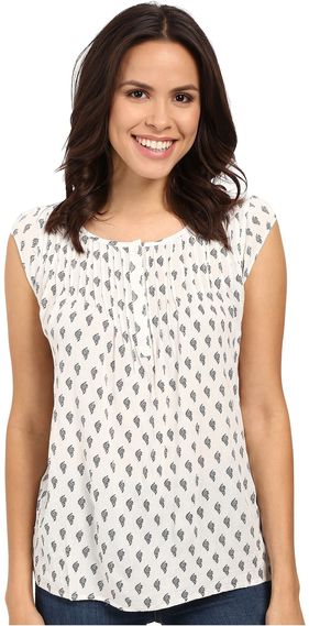 Mavi Jeans Cap Sleeve Pintuck Detail Top Antique Print White