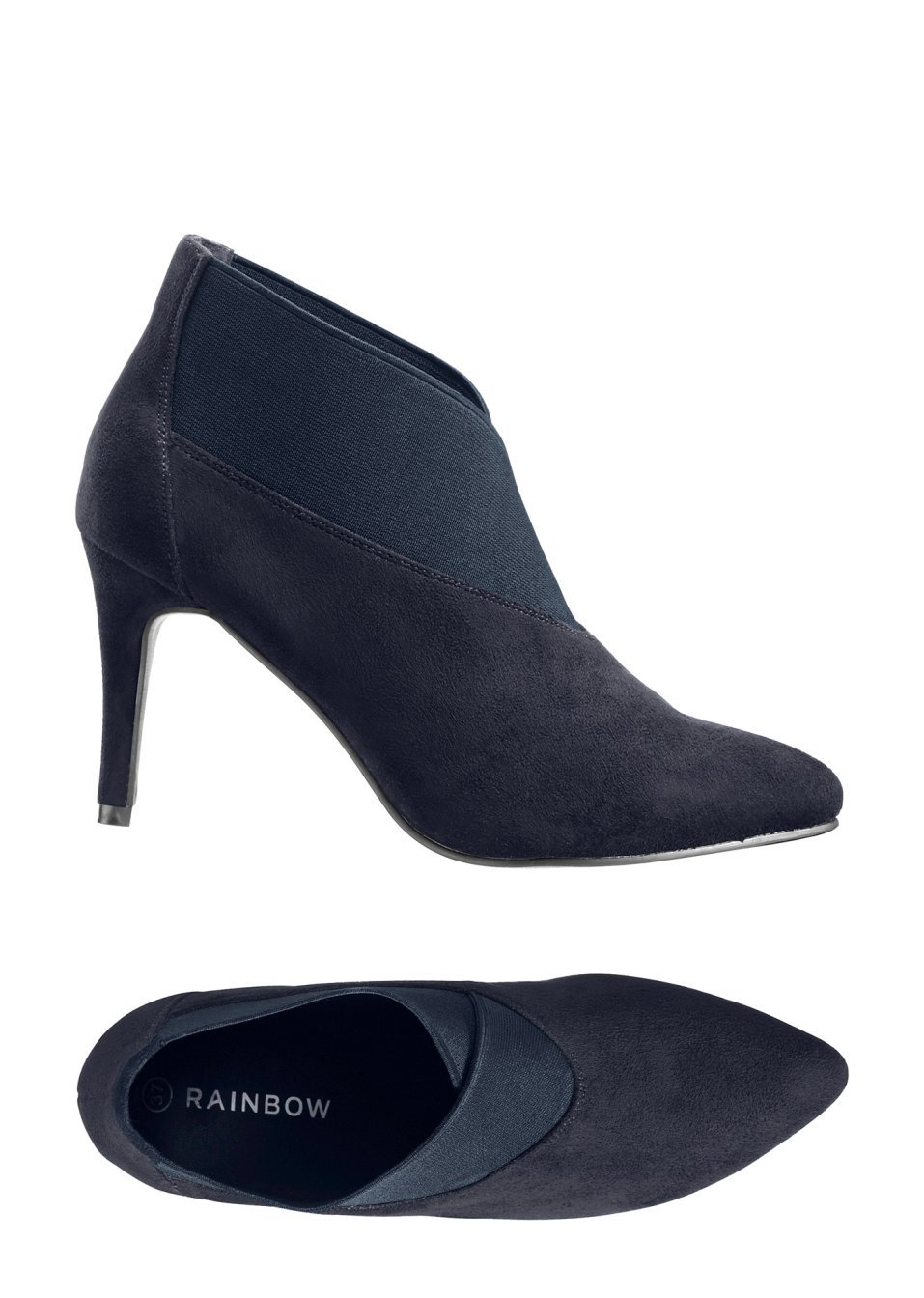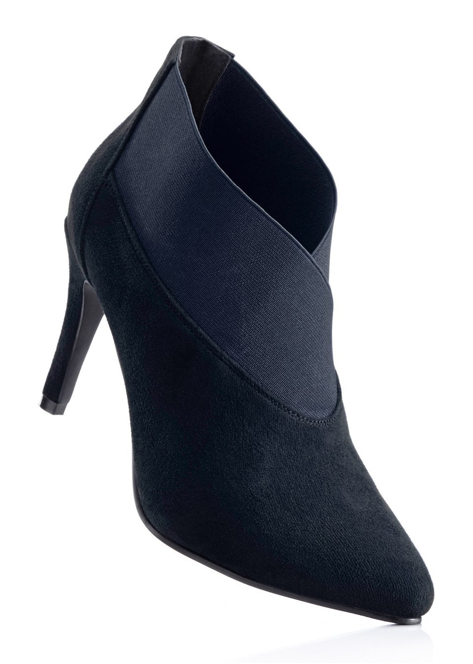 O pereche de botine elegantă şi sexy totodată, cu aspect catifelat tandru şi bată elastică interesant suprapusă, în partea de sus. Model rafinat prevăzut cu un toc-cui înalt de 9 cm. Material superior: imitaţie de piele întoarsă; Talpă interioară: imitaţie de piele; Talpă: material sintetic