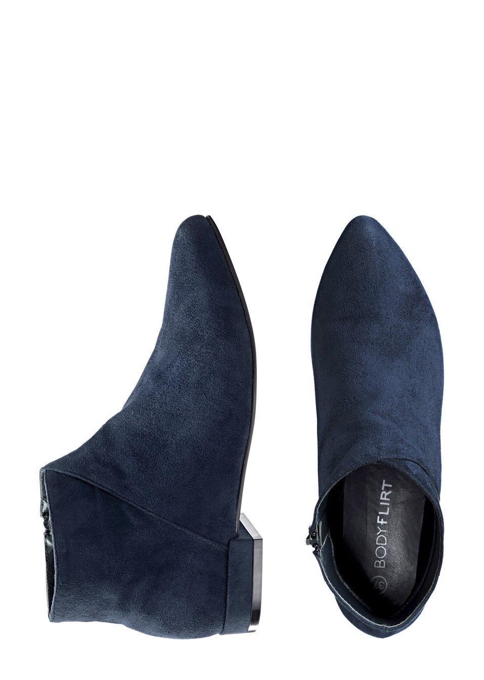 O pereche de cizme super scurte cu design simplu şi de efect, prevăzute cu fermoar pe părţile laterale. Model uşor cu toc înalt de cca. 2 cm. Material superior: imitaţie de piele întoarsă; Talpă interioară: imitaţie de piele; Talpă: material sintetic