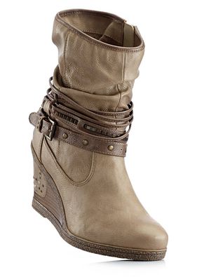 O pereche de cizme la ultimul răcnet, din actuala colecţie Mustang, cu design uşor extravagant şi talpă ortopedică trendy, înaltă de 8 cm. Model confortabil, prevăzut cu fermoar lateral de încheiere. Material superior: imitaţie de piele; Talpă interioară: material textil; Talpă: material sintetic