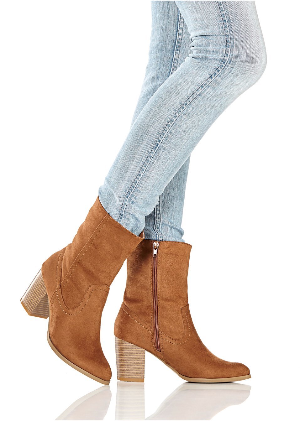Un model şic modern, prevăzut cu fermoar şi toc gros şi înalt de 7 cm. Material superior: imitaţie de piele întoarsă; Talpă interioară: imitaţie de piele; Talpă: material sintetic