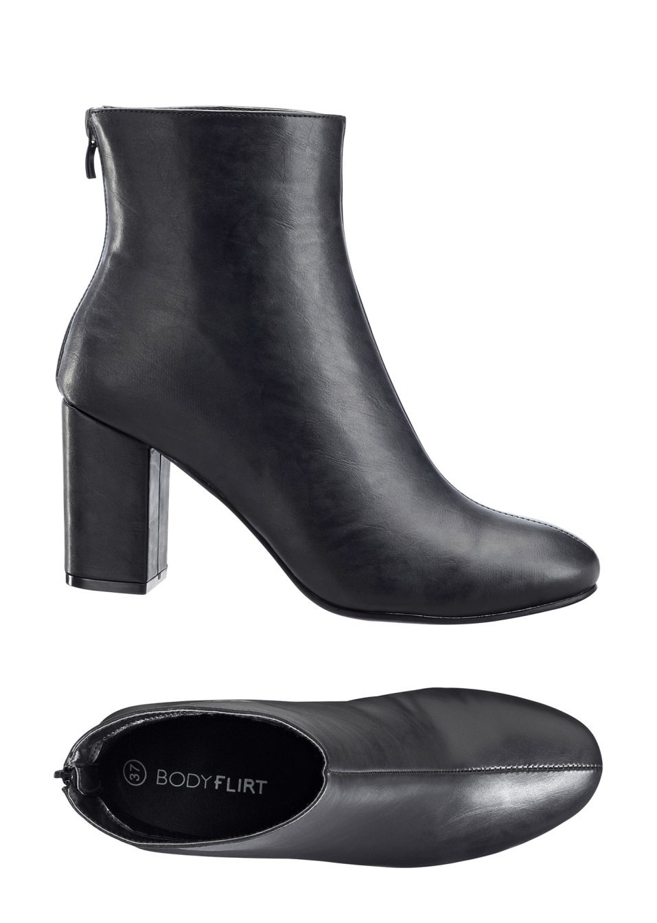 Un model şic cu toc gros şi înalt de 8 cm, fermoar şi un aspect deosebit. Marca Bodyflirt! Material superior: imitaţie de piele; Talpă interioară: material sintetic; Talpă: material sintetic