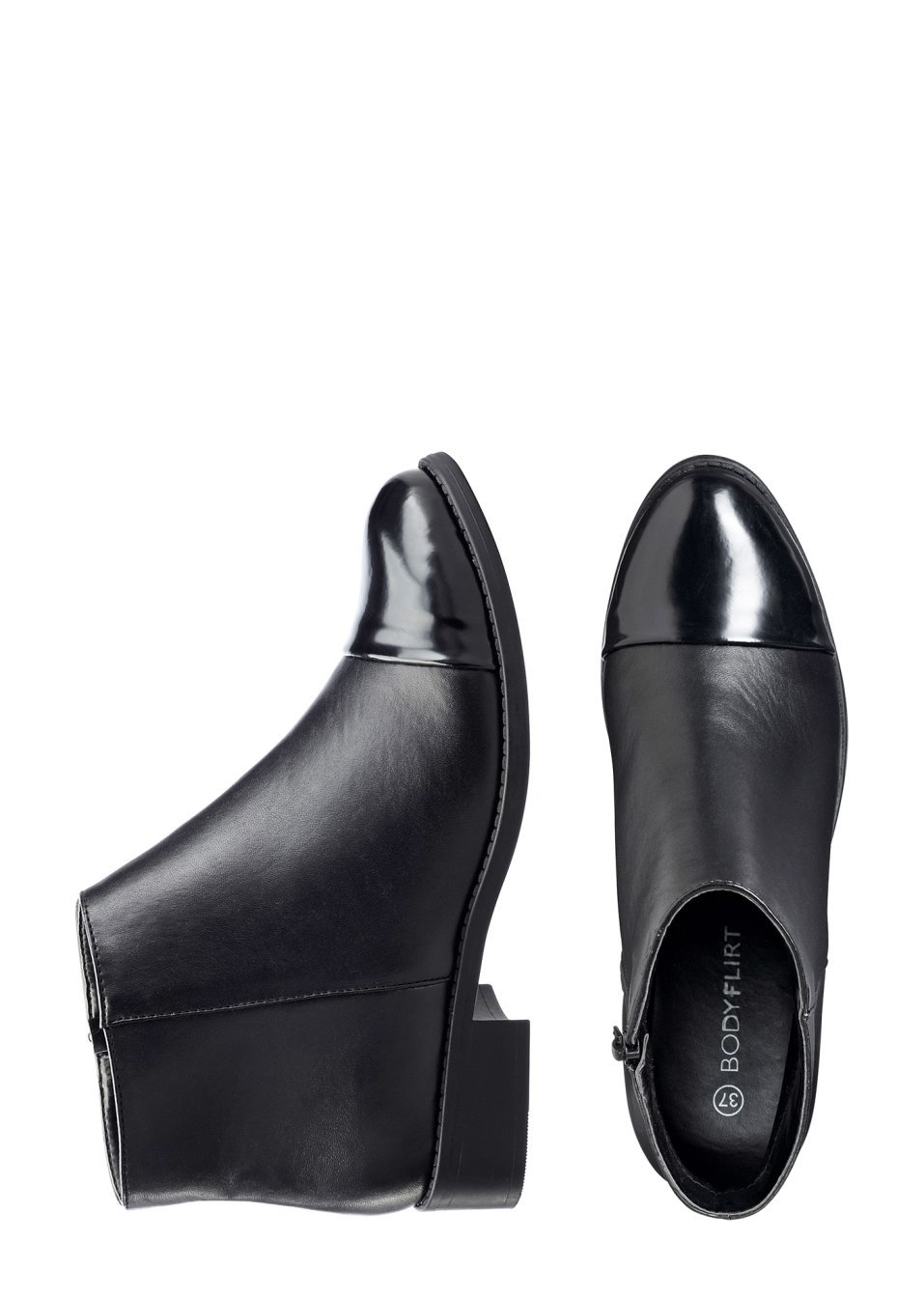 Un model modern şi elegant, toc gros şi înalt de 3 cm şi fermoar de închidere. Marca Bodyflirt! Material superior: imitaţie de piele; Talpă interioară: material textil; Talpă: material sintetic