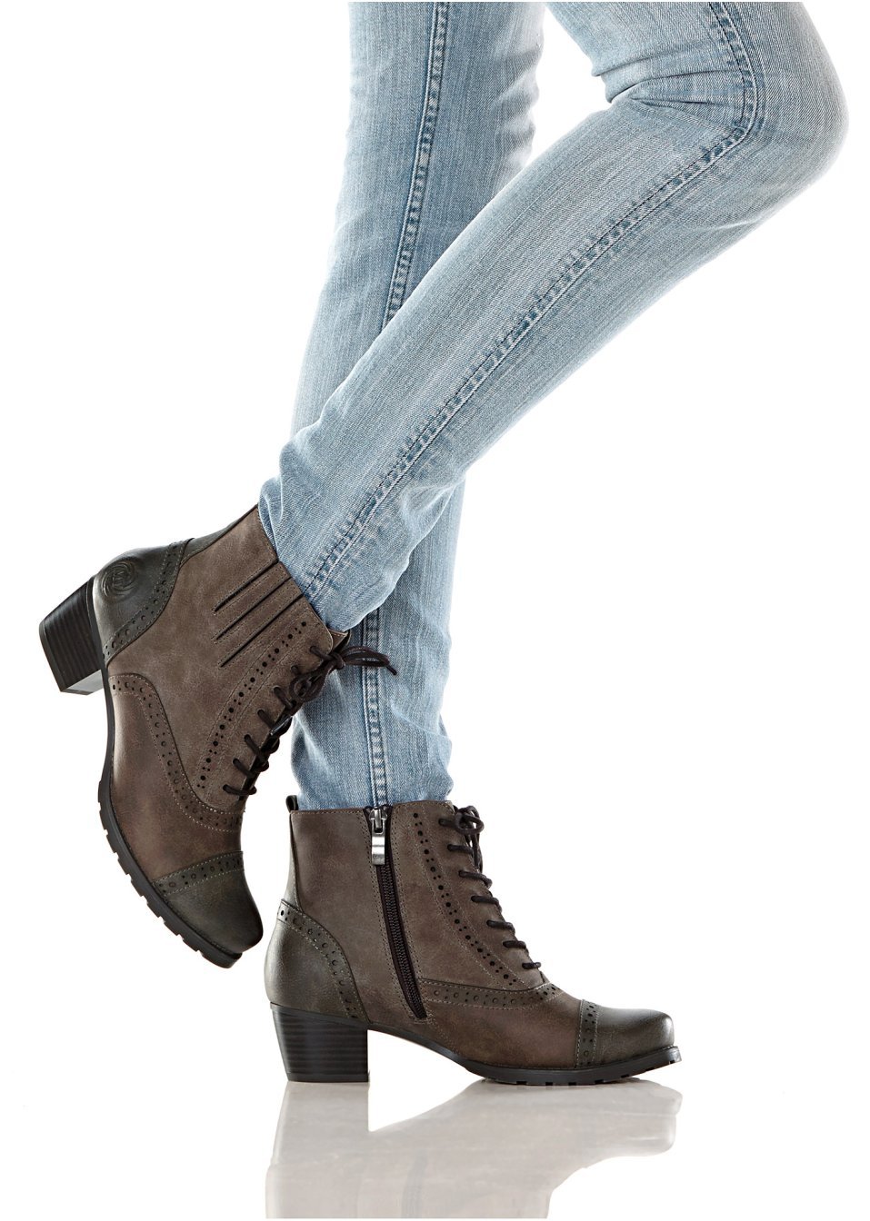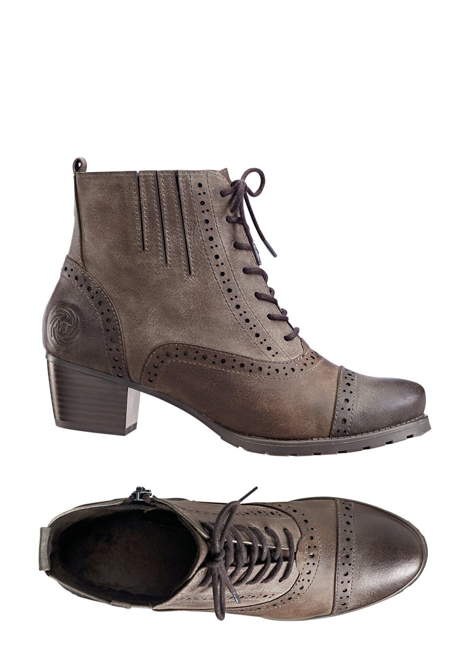 O pereche de ghete adorabile din actuala colecţie Marco Tozzi, cu formă elegantă şi modernă. Model prevăzut cu șireturi decorative în faţă, fermoar de încheiere prins pe interior şi toc trapez de cca. 5 cm. Material superior: imitaţie de piele; Talpă interioară: material textil; Talpă: material sintetic
