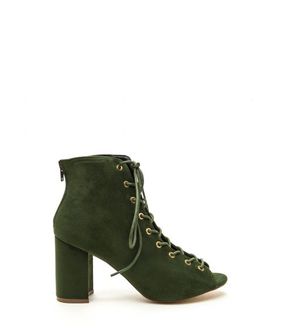 Incaltaminte Femei CheapChic Set To Launch Faux Suede Lace-up Booties Huntergreen