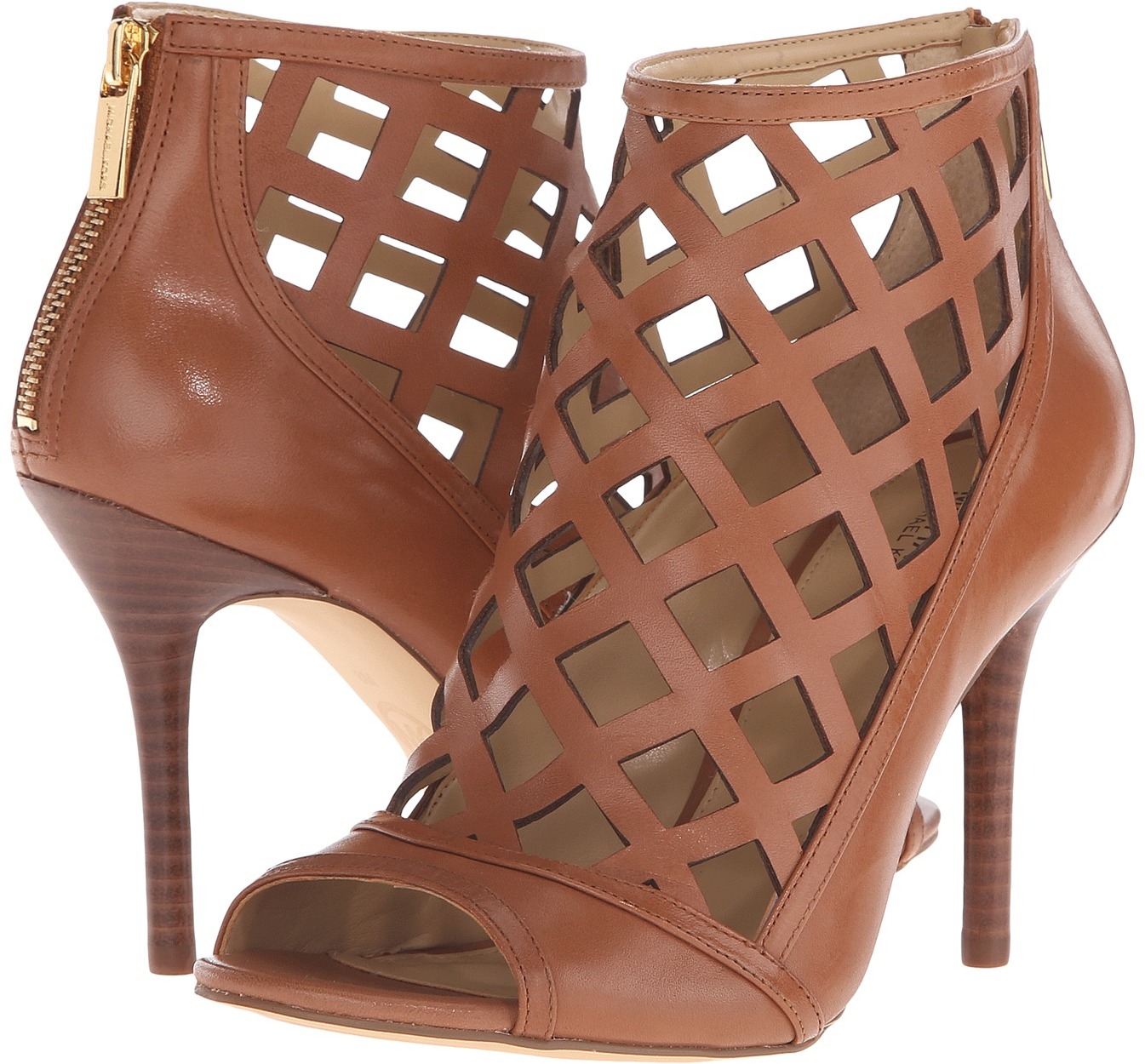 Michael Kors Yvonne Open Toe Bootie Luggage Smooth Calf