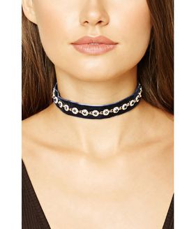 Bijuterii Femei Forever21 Velvet Rhinestone Charm Choker Navygold