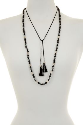 Chan Luu Sterling Silver Tassel & Beaded Necklace ONYX MIX