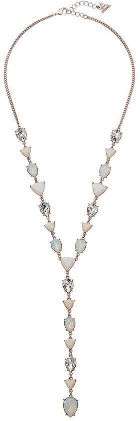 GUESS Triangle and Round Stone Y Necklace Rose Gold/White Opal/Crystal