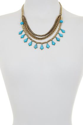Steve Madden Turquoise Diamond Drop Chain Necklace BURNISHED GOLD TORQ