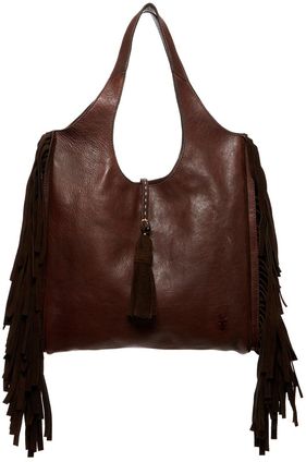 Frye Farrah Fringe Leather Shoulder Bag DARK BROWN