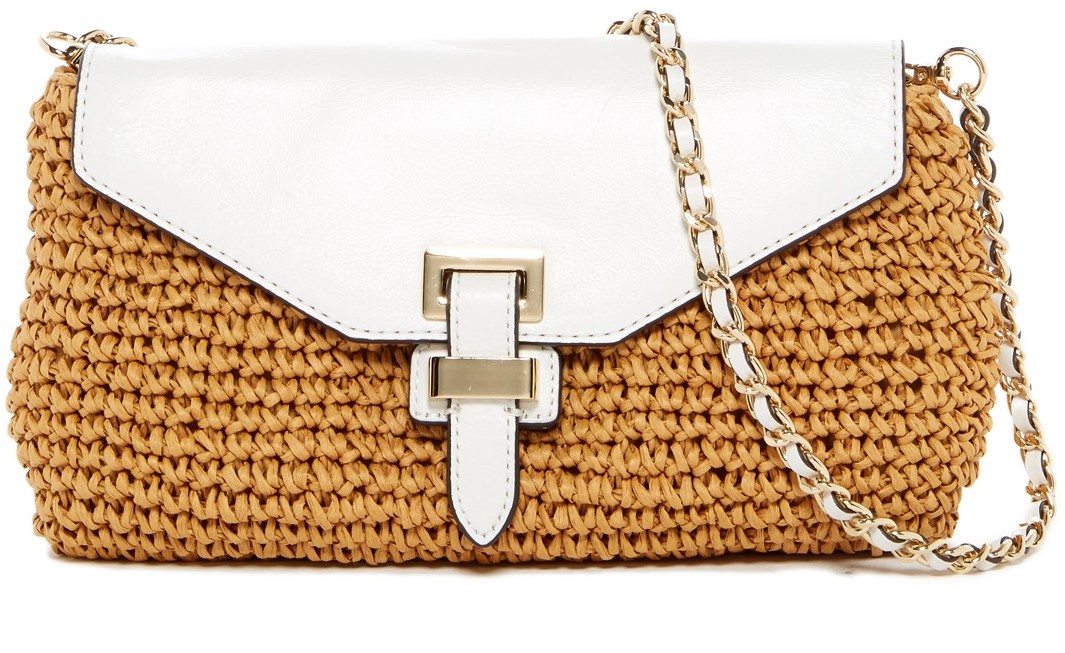 Michael Kors Naomi Large Straw Leather Clutch OPTIC WHIT