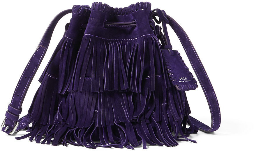 Ralph Lauren Mini Fringe Suede Bucket Bag Purple