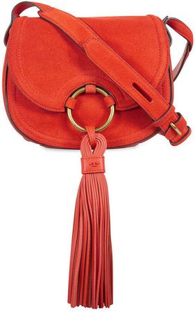 Tory Burch Tassel Mini Suede Leather Saddlebag - Pure Orange N/A