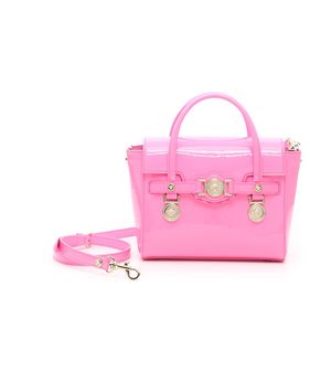 Versace Small Top Handle Patent Signature Bag PINK/ORO CHIARO