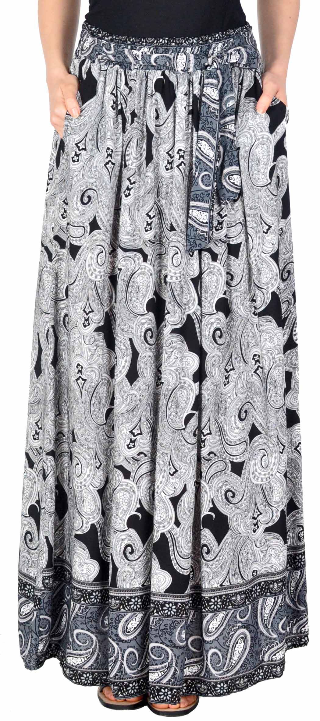 Fusta casual neagra lunga din bumbac cu imprimeu paisley 5007NG