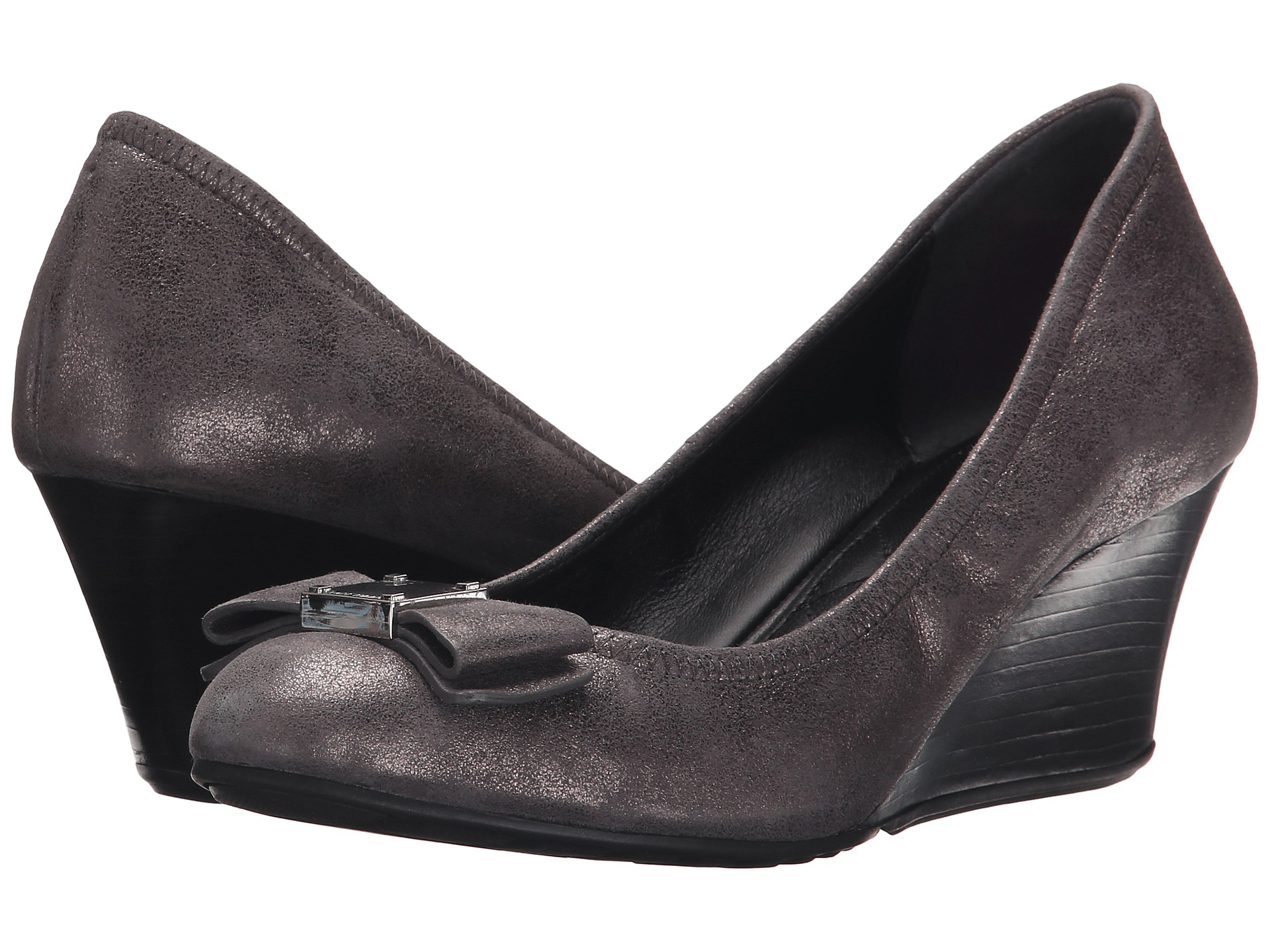 Cole Haan Tali Grand Bow Dark Silver Metallic Suede