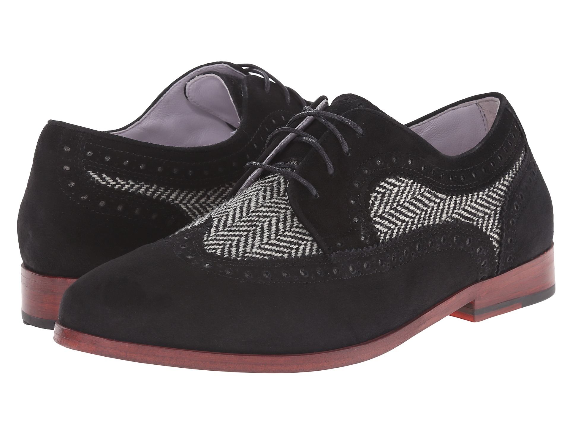 Johnston & Murphy Dinah Wingtip Black Suede/Black & White Herringbone