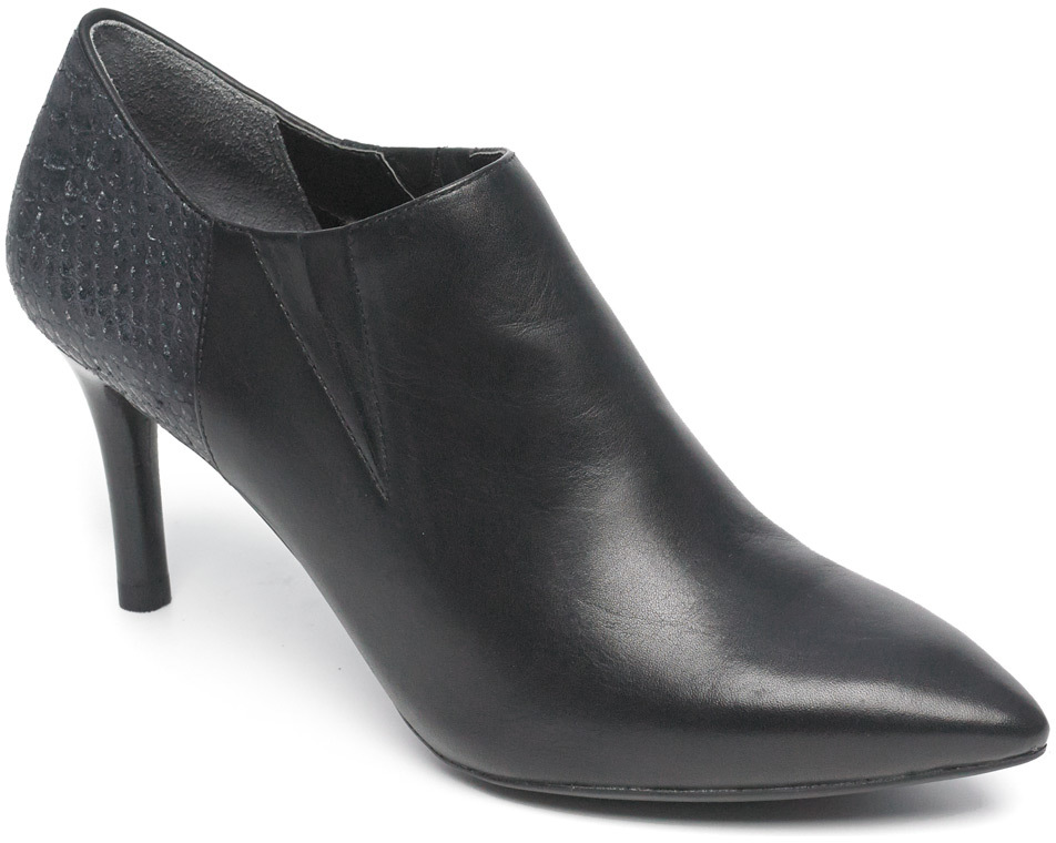 Rockport Total Motion 75MM Pointy Toe Shootie Black Burnished Calf/Snake Embossed