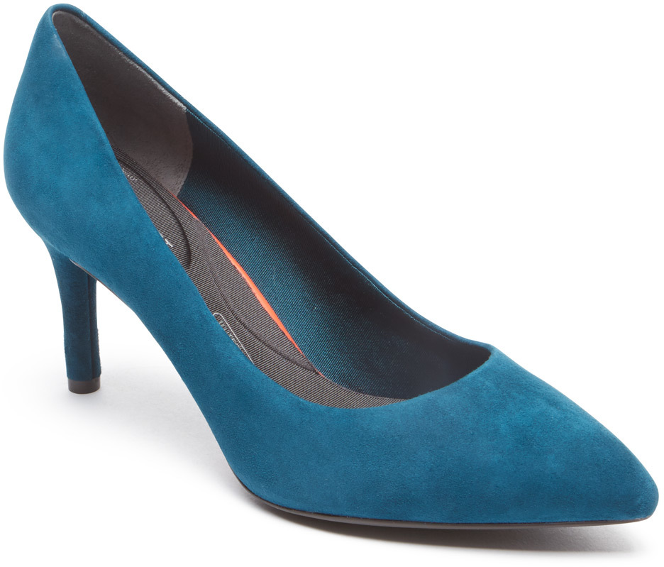 Rockport Total Motion Pointed Toe Plain Pump 75mm Rich Teal Kid Suede