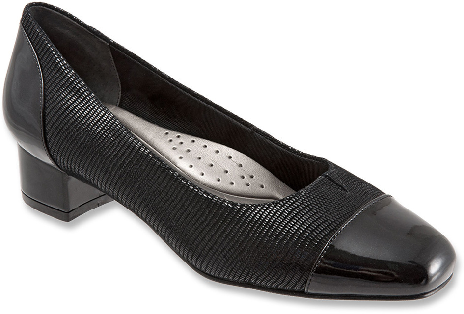 Trotters Danelle Black Patent Suede Lizard Leather/Pearlized Patent