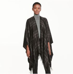 Ralph Lauren Talia Plaid Ruana Scarf Black