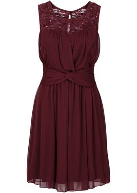 Pentru o apariție strălucitoare! Rochie elegantă din șifon, cu un model ideal pentru ocaziile de seară sau petrecerile cocktail. Dantelă și paiete pentru un aspect decorativ. Lungimea la măr. 36/38 este de cca. 90 cm. Căptuşeală: 100% poliester; Dantelă: 58% poliamidă, 40% poliester, 2% elastan; Plasă: 100% poliester