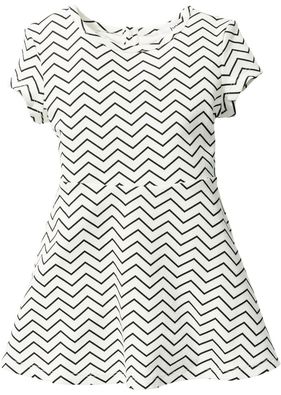 O rochiţă super dulce, cu print dinamic modern în "zig-zag", prevăzută cu mânecuţe scurte şi croi super confortabil, numai bună de joacă. Material superior: 100% bumbac