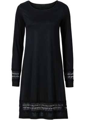 O rochie în stil boemic, cu o croială relaxantă şi cu aplicaţii adorabile din dantelă croşetată, la mâneci şi poală. Lungimea la măr. 40/42 este de cca. 96 cm. Material superior: 65% poliester, 35% vâscoză; Dantelă: 100% bumbac