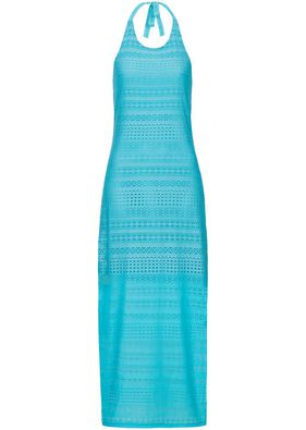 Șic și în această vară! Un croi maxi, model neckholder, material ușor transparent și căptușeală opacă, cu un croi scurt. Lungime de cca. 140 cm la măr. 36/38. Material superior: 100% poliester; Căptuşeală: 100% poliester