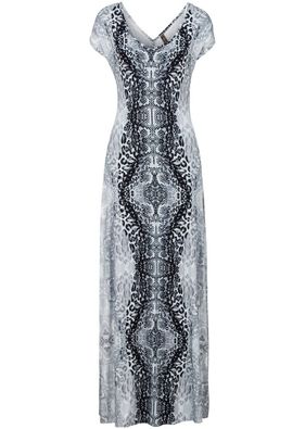 O piesă perfectă pentru vară şi soare - rochie maxi cu un croi frumos cambrat pe trup şi un imprimeu adorabil. Lungimea la măr. 36/38 este de cca. 146 cm. Material superior: 5% elastan, 95% vâscoză