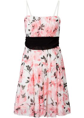 Rochie romantică realizată dintr-un material delicat cu un imprimeu floral diafan în nuanţe pastelate şi cu zona taliei frumos pusă în evidenţă printr-o inserţie stil centură de culoare neagră. Lungimea la măr. 36/38 este de cca. 90 cm. Material superior: 100% poliamidă; Căptuşeală: 100% poliester