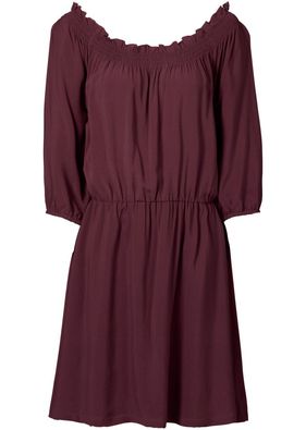 O rochie ultra feminină şi plină de şarm, prevăzută cu decolteu larg tip Carmen, frumos încreţit, mâneci comode 3/4 şi cusătură elastică în talie. Lungimea la măr. 42 este de cca. 92 cm. Material superior: 100% vâscoză; Căptuşeală: 100% poliester