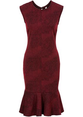 Un "must-have" pentru orice damă care se respectă - rochie şic, gen "ladylike" cu o lungime decentă şi volănaş terminal foarte de efect! Model confecţionat dintr-un material care se mlădiază perfect pe trup, ornat cu un imprimeu stil Jaquard. Lungimea la măr. 38 este de cca. 108 cm. Material superior: 98% poliester, 2% elastan