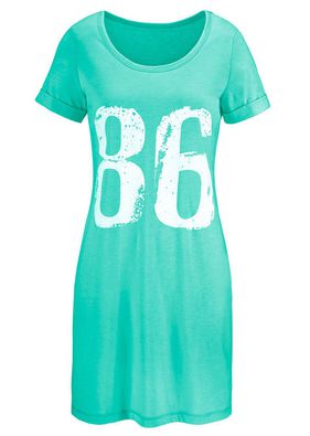 Rochie basic cu aspect sport tineresc, prevăzută cu decolteu rotund şi larg. Model lavabil cu o lungime de cca. 92 cm la măr. 40/42. Material superior: 65% bumbac, 35% poliester
