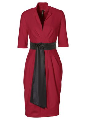 Drapeuri rafinate! Rochie mulată cu decolteu adânc în V, mâneci 3/4, aspect petrecut și curea lată în zona taliei. Lungime la măr. 38 cca. 98 cm. Material superior: 70% vâscoză, 25% poliester, 5% elastan; Acoperire: 100% poliuretan; Accesoriu: 100% poliester