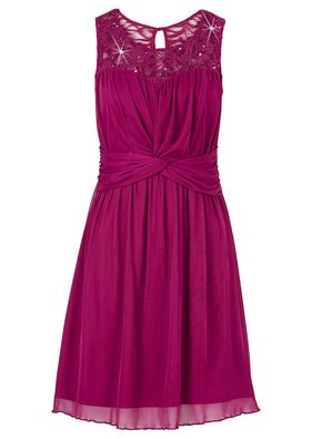 Pentru o apariție strălucitoare! Rochie elegantă din șifon, cu un model ideal pentru ocaziile de seară sau petrecerile cocktail. Dantelă și paiete pentru un aspect decorativ. Lungimea la măr. 36/38 este de cca. 90 cm. Căptuşeală: 100% poliester; Dantelă: 58% poliamidă, 40% poliester, 2% elastan; Plasă: 100% poliester