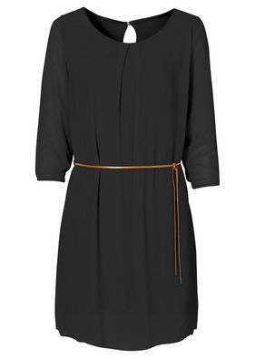 Un model de rochie şic și feminin, ideal pentru ținutele casual de zi sau seară, indiferent de situaţie! Model confecţionat din șifon ușor, prevăzut cu o căptușeală moale din jerse, ce se simte foarte plăcut la purtare. Rochia dispune de un croi ultra confortabil cu pense delicate la decolteu, elastic la baza mânecilor şi o cureluşă foarte subţire în talie. Lungimea la măr. 36/38 este de cca. 90 cm. Material superior: 100% poliester; Căptuşeală: 95% vâscoză, 5% elastan