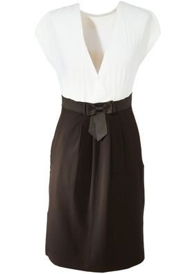Cu aspect petrecut în partea superioară, mâneci drapate și cute decorative la nivelul poalei. Cureaua în formă de fundă, prinsă în talie completează look-ul final. Lungime de cca. 96 cm la măr. 40/42. Se spală la mașină. Material superior: 5% elastan, 95% vâscoză